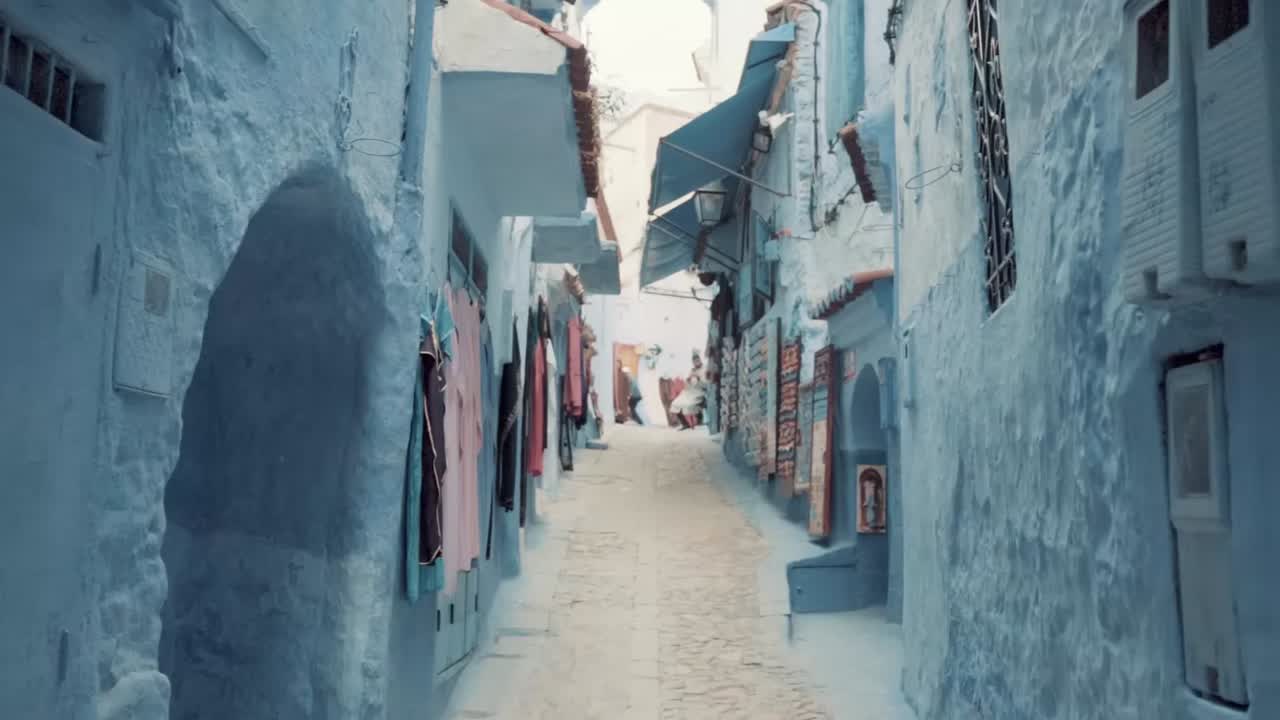 - People Walk down the Blue Clogged streets of Chefchaouen